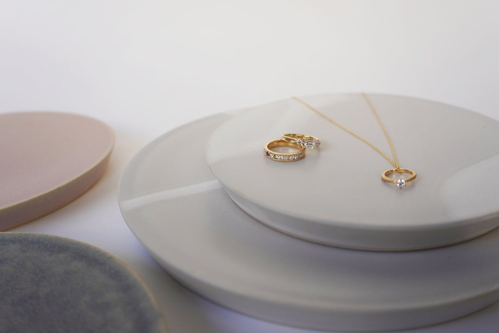 手のひらサイズで、デザートやお食事用としてはもちろん、ジュエリープレートとして玄関の棚やベットサイドに置くのもおすすめ。作家本人も、自宅ではジュエリー置き場として愛用中だそうです。