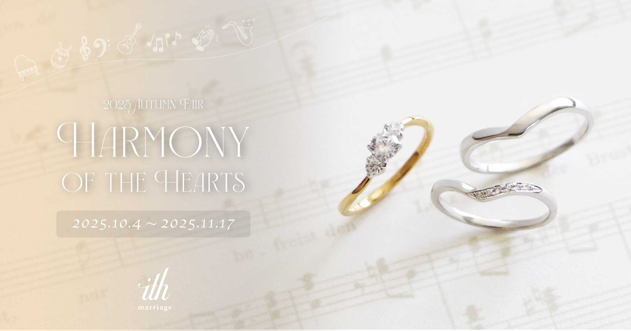 弊社が運営するオーダーメイドの婚約指輪・結婚指輪ブランド ith(イズ)にて、この秋「Harmony of the Hearts 〜想いのハーモニー〜」と題し、全国のithアトリエを巡回する特別フェアを開催します。