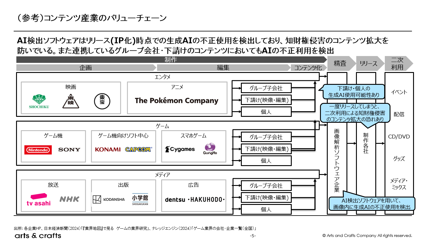 これにより、当該企業の画像解析ソリューションが想定する顧客となるコンテンツ業界の全体像を把握するとともに、今後どの領域で需要が拡大していく可能性が高いのか、また競合との関係性の中でどのような立ち位置が取り得るのかを見極めることを目的としています。