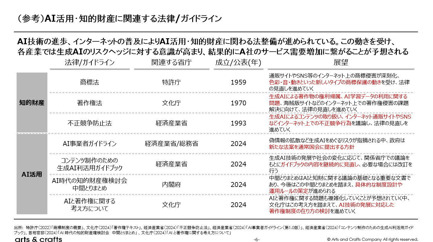 法規制調査の目的は、日本市場参入における「見えにくいリスク」を事前に洗い出し、市場参入における戦略に織り込むことです。特にAI生成コンテンツに関しては、明確に白黒が分かれていないグレーゾーンが多く、「知らなかった」「海外では問題なかった」では済まされないケースも想定されます。そのため、本調査では遵守すべきルールの整理と同時に、将来的な制度変更の方向性を踏まえた情報整理を行うことを目的としました。