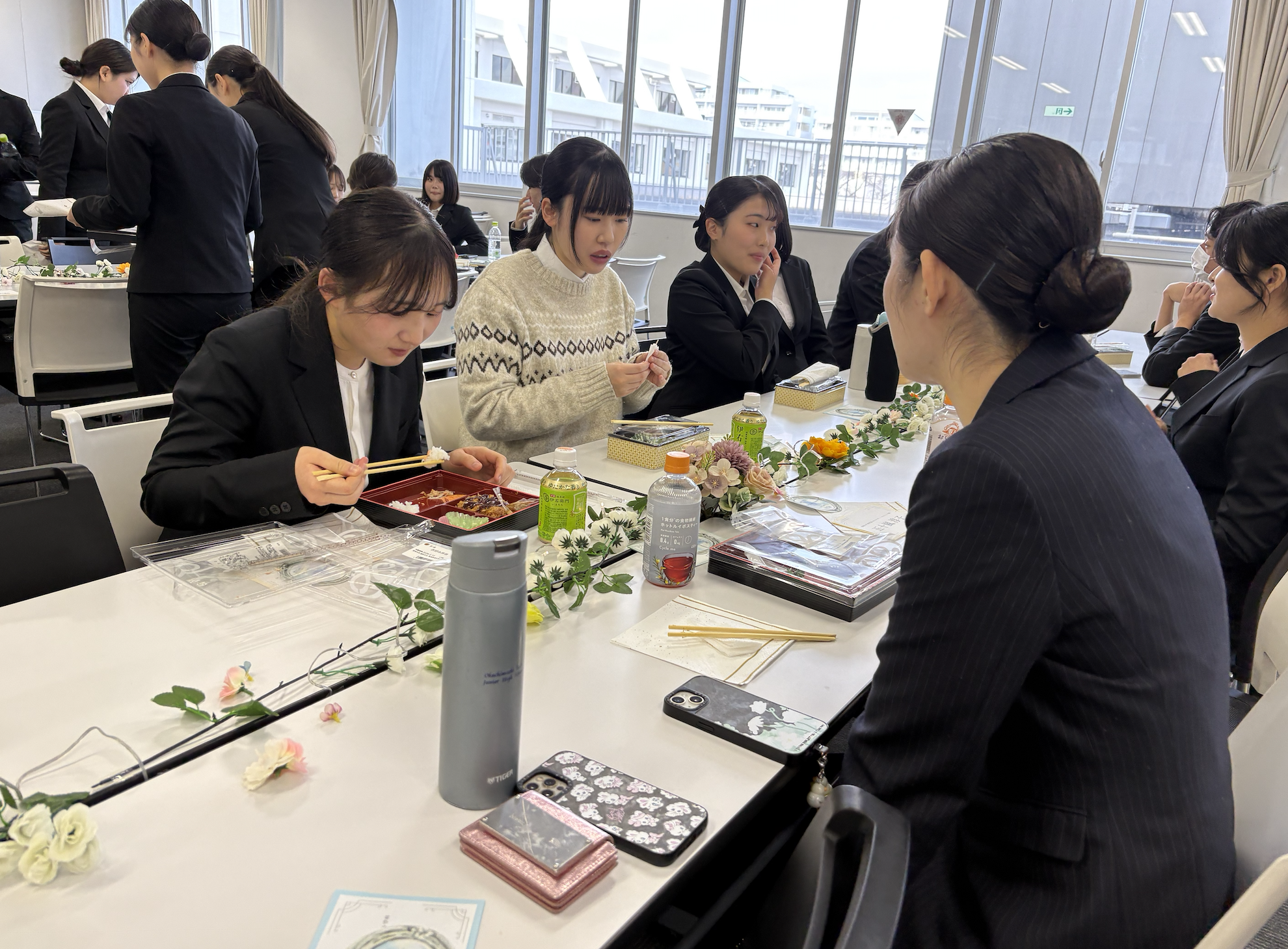 教室に伺うと、学生さんが手配してくださったお弁当に加え、手作りの座席飾りなど、心のこもった「おもてなし」で迎えていただきました。